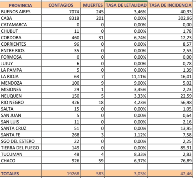 El ministerio de Salud informó que la cantidad de contagiados llegó a 19.268 y el numero total de fallecidos es de 583